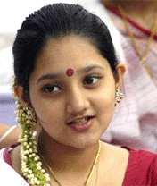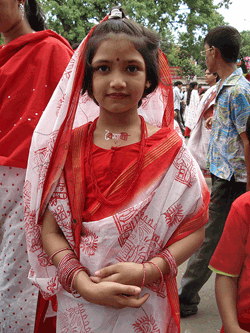 লাল পেড়ে সাদা শাড়ি পড়া কিশোরীর খোঁপায়