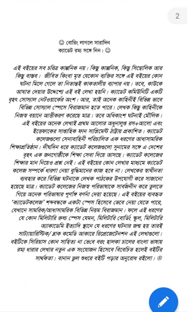 "ক্যাডেট রম্য" নামের ইবুক টি আমি ডাউনলোড করেছি। পুরো বইটি পরে অবশ্যই আমার মতামত জানাই।