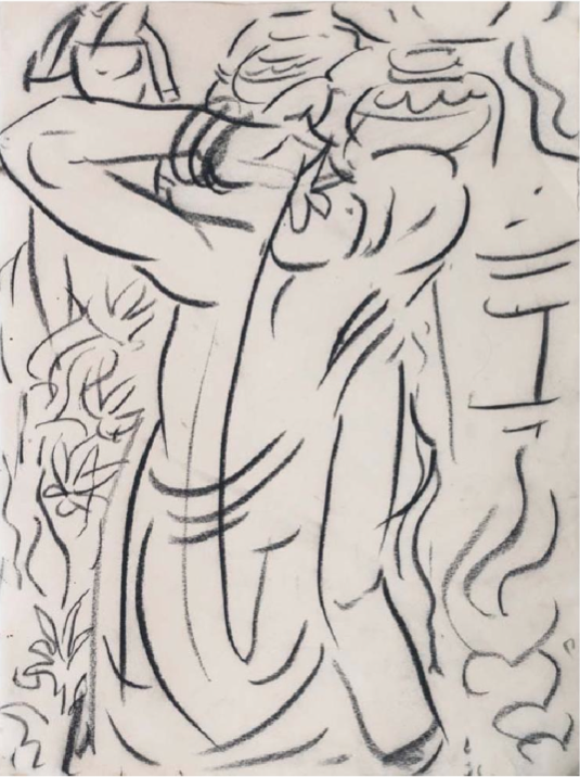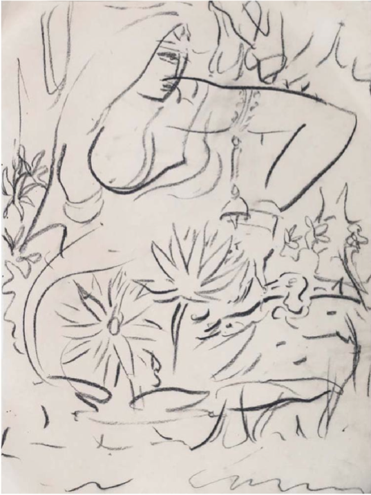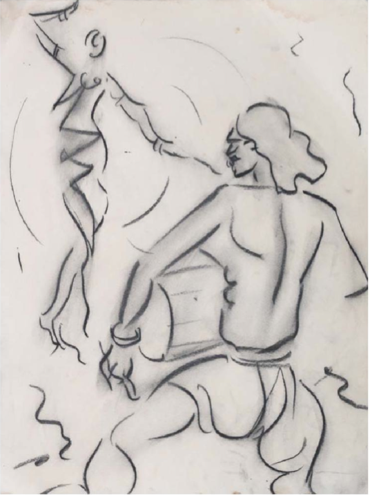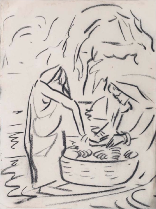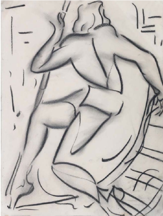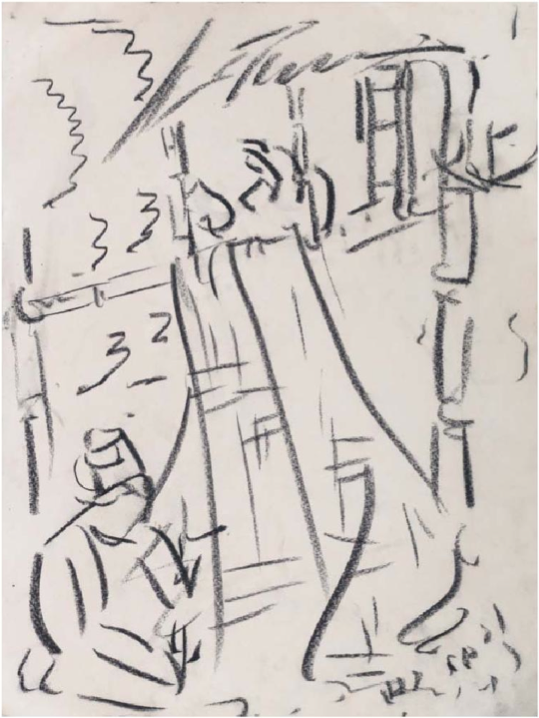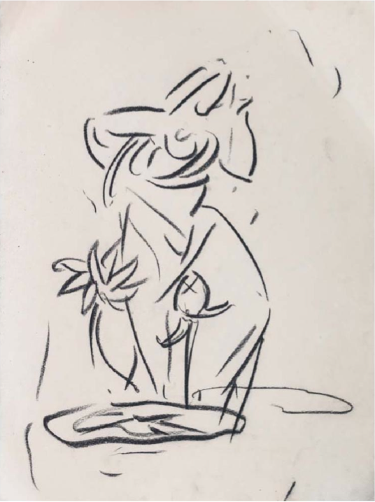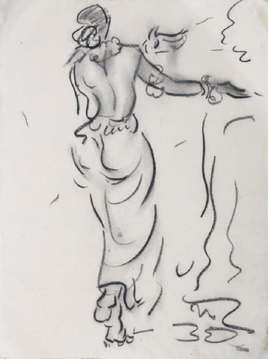 পঞ্চাশ দশকে নড়াইলে জরাজীর্ণ রাজবাড়িতে শিল্পী এস এম সুলতান (শাড়ি পরিহিত) পিছনে, সামনে মাঝে অধ্যাপক আবুল কাশেম জোয়ারদার