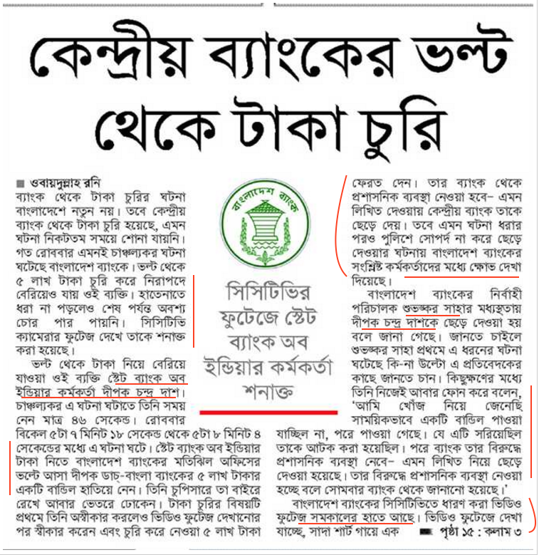 ০১ বাঙলাদেশ ব্যাংকে অতীতেও টাকা চুরি বা লোপাট এর ঘটনা ঘটেছে।