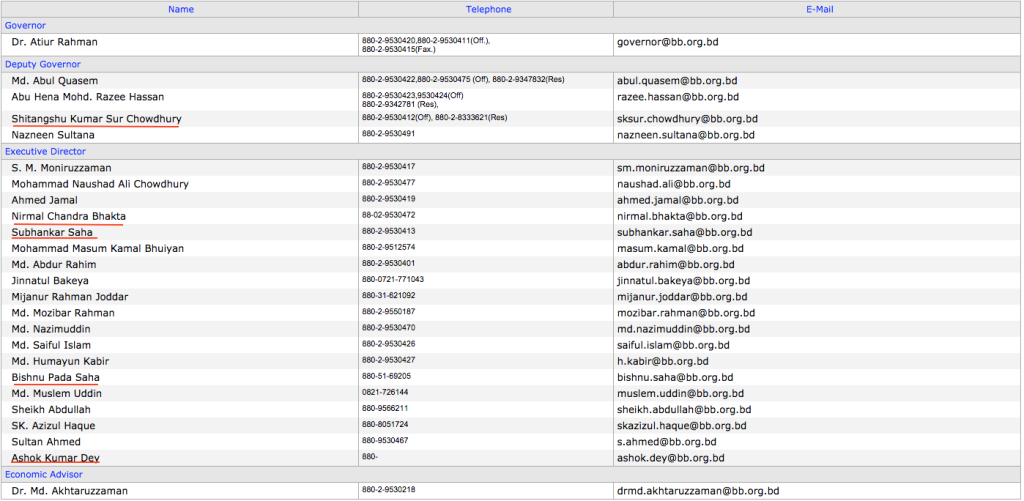 ডেপুটি গভর্ণর ৪ জন। এর মাঝে হিন্দু একজন – সিতাংশু কুমার সুর চৌধুরী। বাকি তিনজন মুসলিম নামধারী।