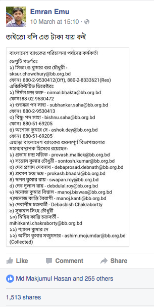 তার পোষ্ট টির মূল বক্তব্য হলো যেহেতু বাঙলাদেশ ব্যাংকের ডাইরেক্টর রা হিন্দু তাই টাকা লোপাট ভারত বা হিন্দুদের চক্রান্ত।