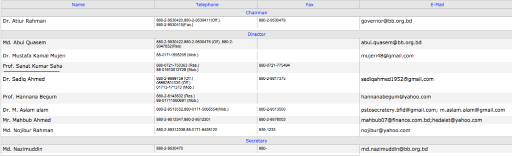 চেয়ারম্যান ছিলেন আতিউর রহমান। ৮ জন ডাইরেক্টর দের মধ্যে হিন্দু নামধারী একজন – প্রফেসর সনৎ কুমার সাহা।