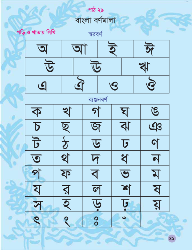 ভালো কথা এই সুযোগে আমরা একটু স্বরবর্ণ ও ব্যঞ্জনবর্ণ ঝালাই করে নিই।