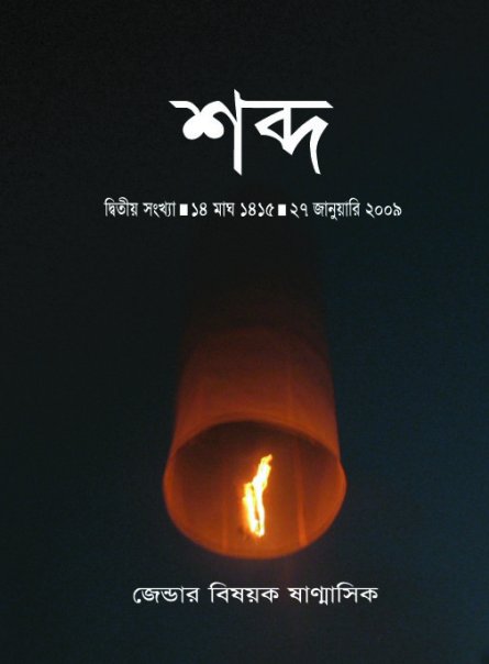 ‘শব্দ’ খুব সম্ভবত জেন্ডার বিষয়ক প্রথম ম্যাগাজিন। আর এর সম্পাদনায় আমাদের কলেজের আমারই বন্ধু সিলেট ক্যাডেট কলেজের ২০তম ব্যাচের ফরিদ, যে কিনা সচেতন মানুষদের মতই , যে কিনা জেন্ডার চিন্তাধারায় সর্বদাই অগ্রবর্তী এক চিন্তাশীল মানুষ। একই কলেজের ২১তম ব্যাচের সিদ্দিকের লেখা দুইটা কবিতা ও স্থান পেয়েছে এই প্রকাশনাতে।